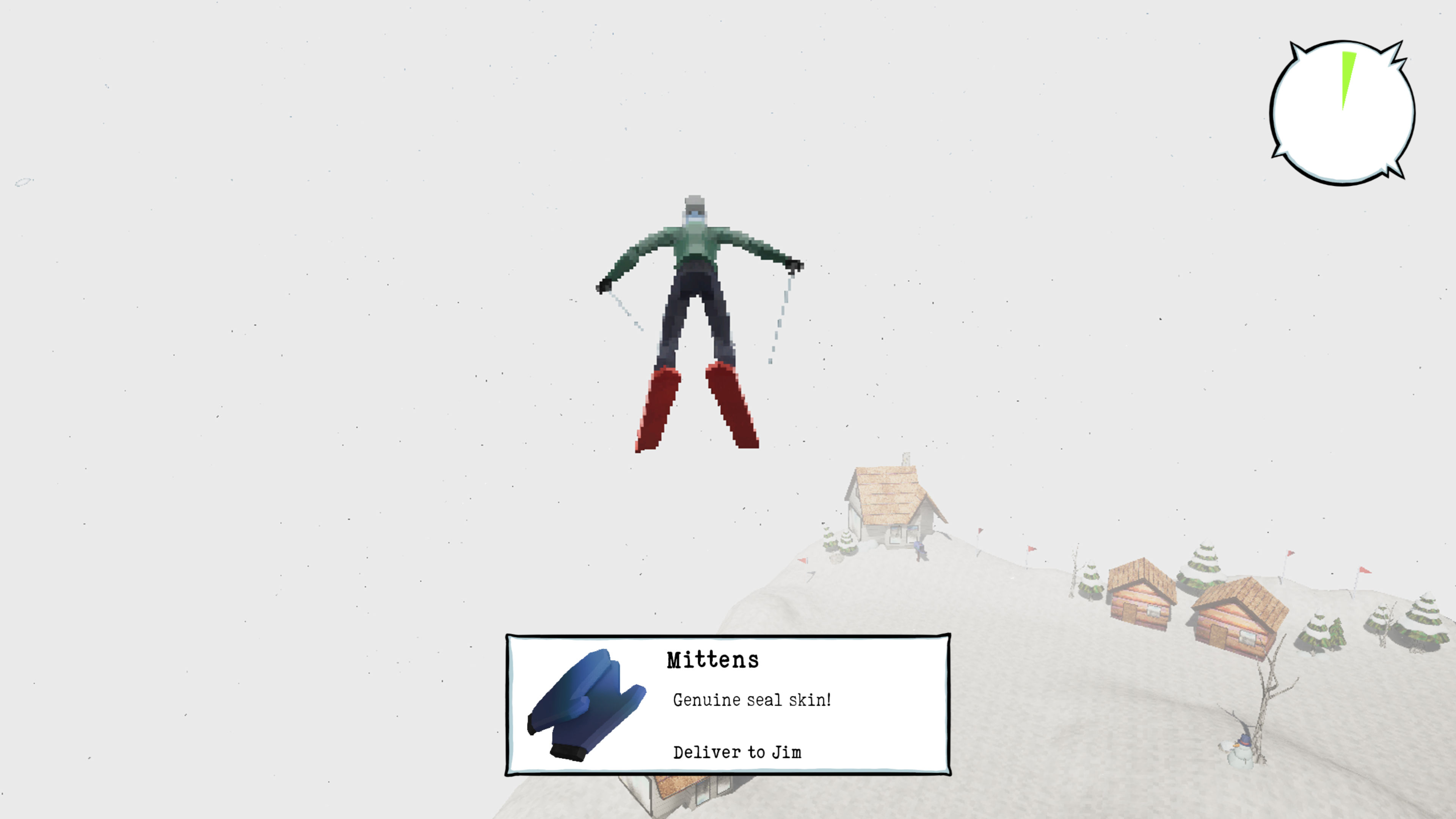 You play as the sole delivery ski bro in the alpines. The local post office calls for your help to deliver overwhelming amount of packages needing a home. Be quick otherwise you might be fired powder